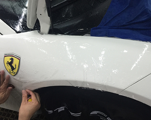 冰奥基材是美国唯一一家TPU薄膜供应商,胶水为美国最好,揭膜不伤车漆不留胶。三分膜七分贴,冰奥PPF由专门培训的御用技师施工,不完美不交车。